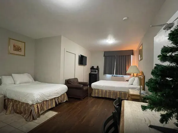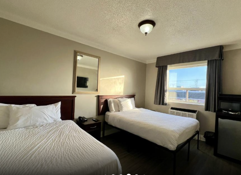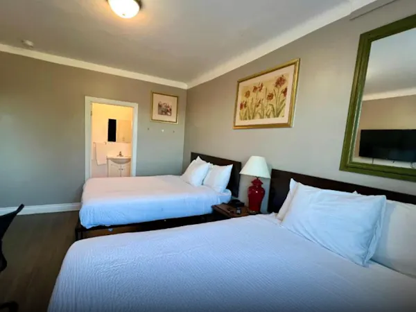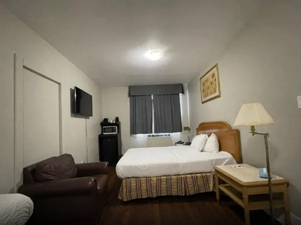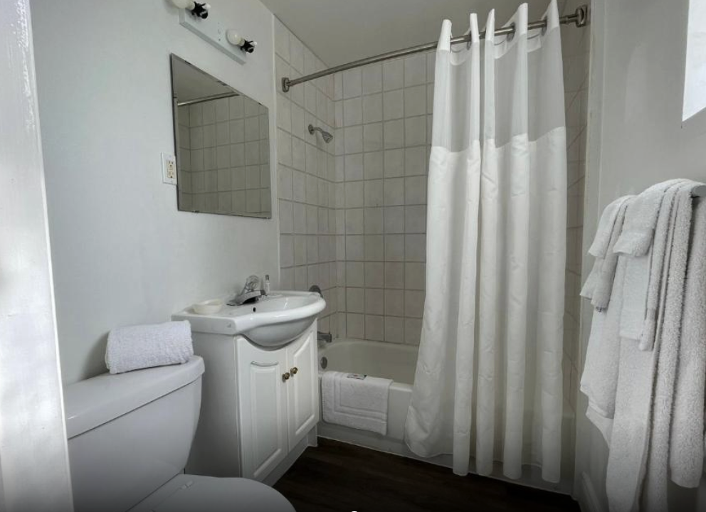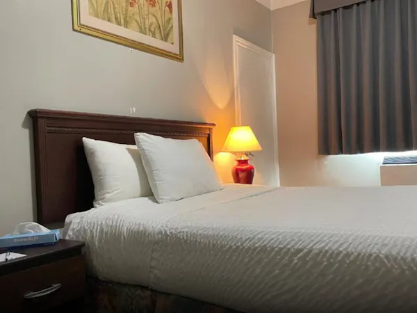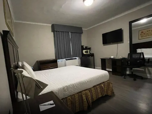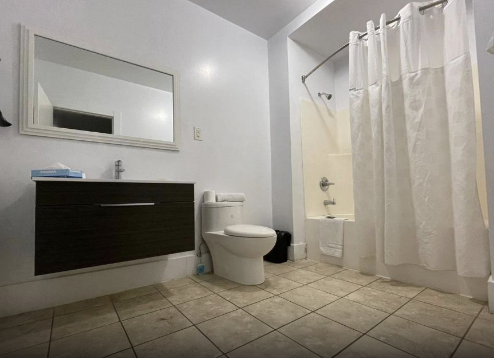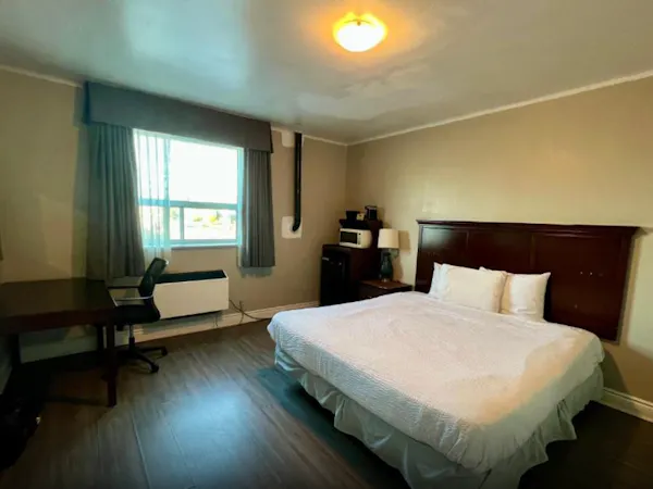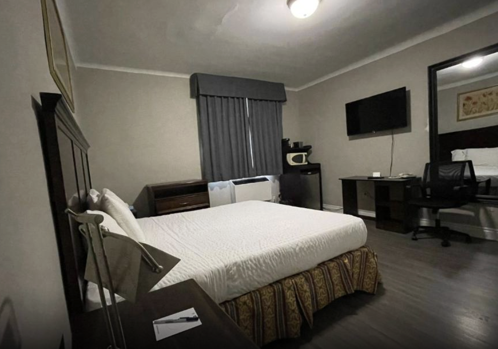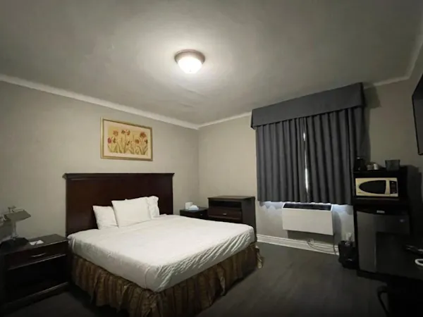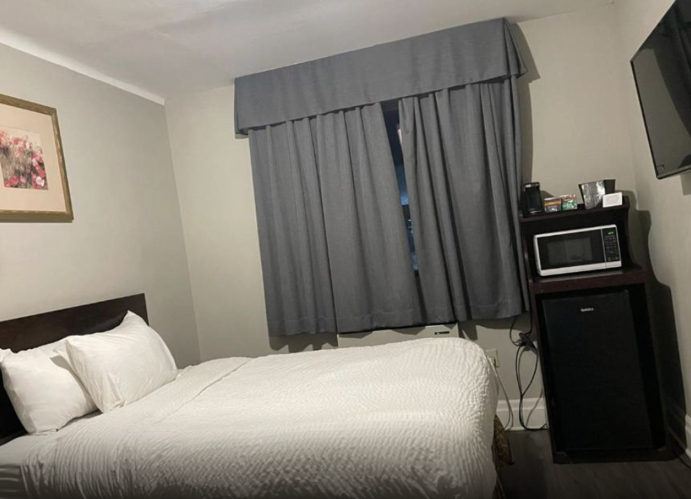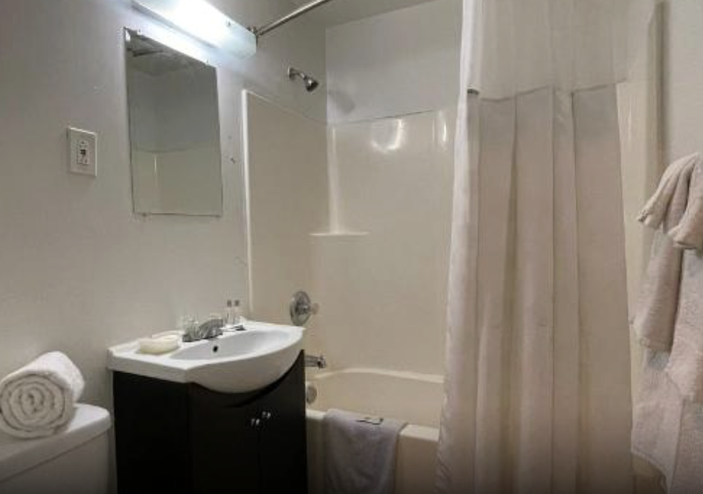 This spacious room includes a King-sized bed, a private bathroom with a shower tub and some essential toiletries . The room also provides air conditioning and heating, blackout curtains for added privacy, a private entrance, coffee maker, wardrobe space and a flat-screen SMART TV with streaming services, a mini-fridge and a micro-oven. Live like the King you are.
